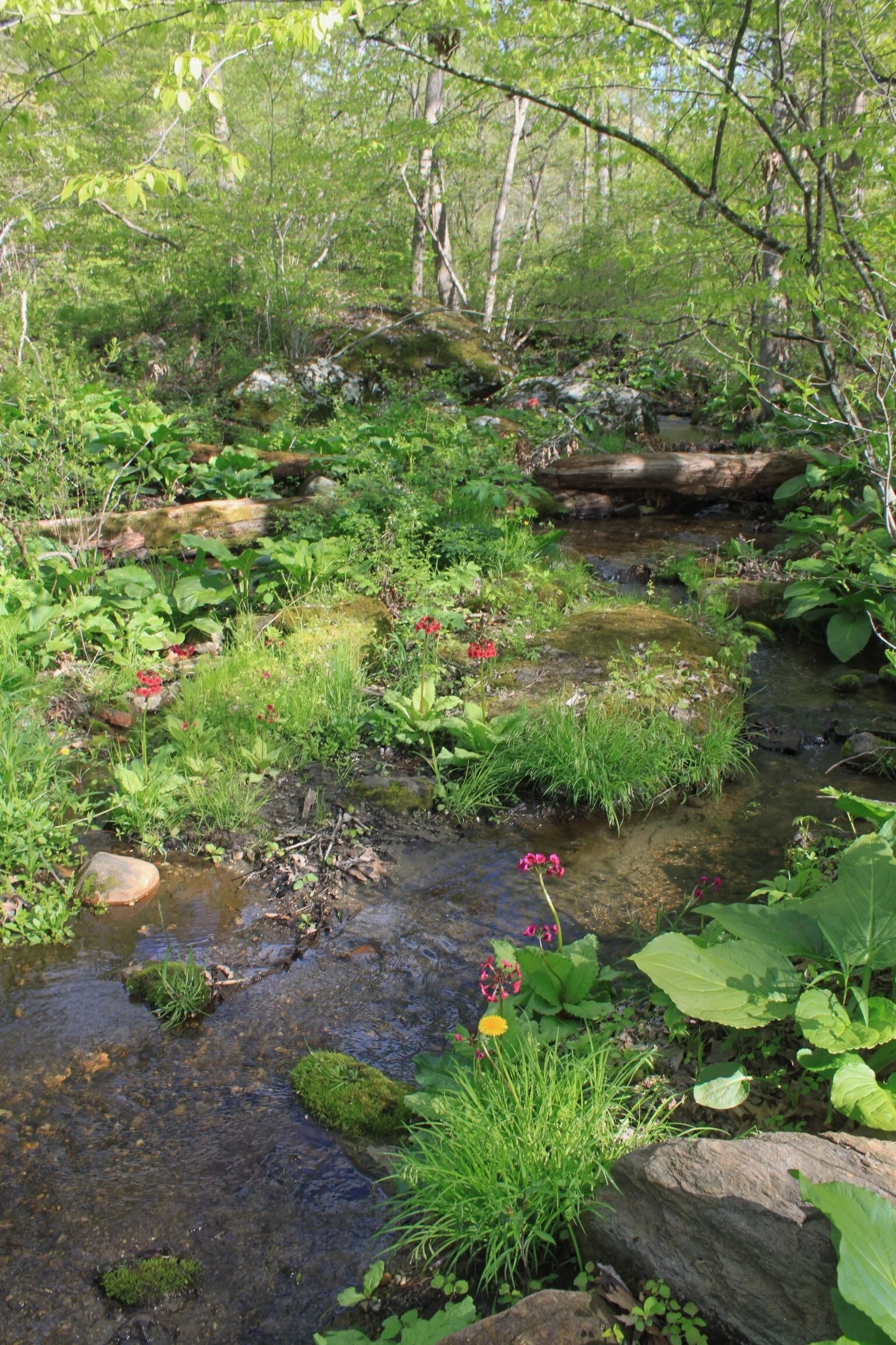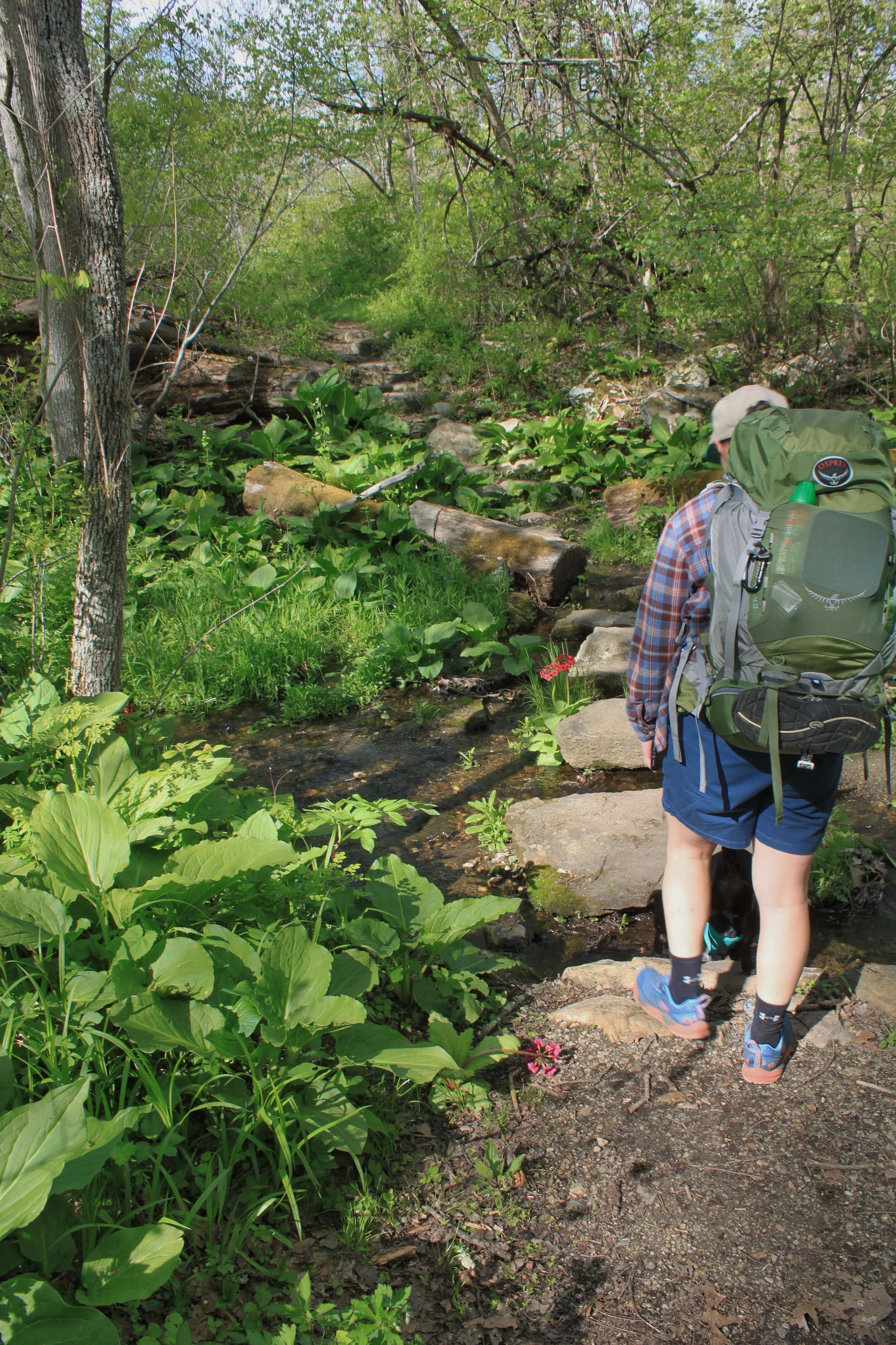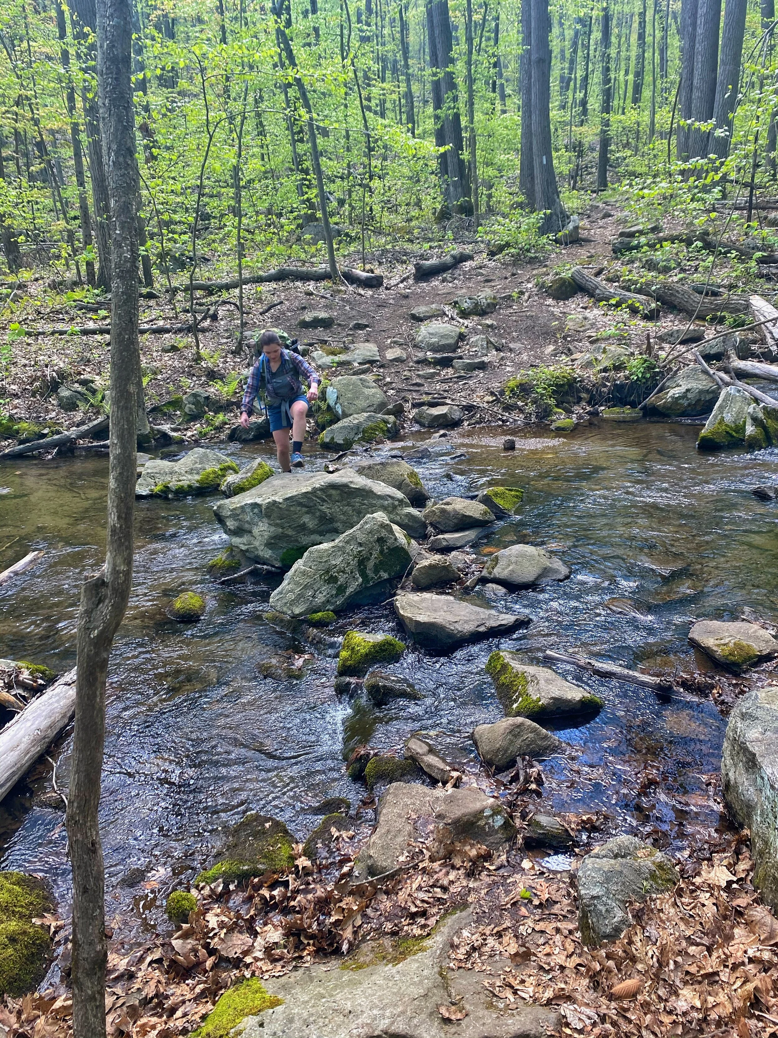 After snacking with a view you’re rewarded even more with relatively flat terrain for about 1.5 - 2 miles. You’ll cross a few more streams and then one large stream that is gorgeous. The rock path, if you can call it that, is a little tough to get across but worth it. This is one of the last areas with multiple off-trail areas to sit. Would definitely recommend grabbing lunch here.