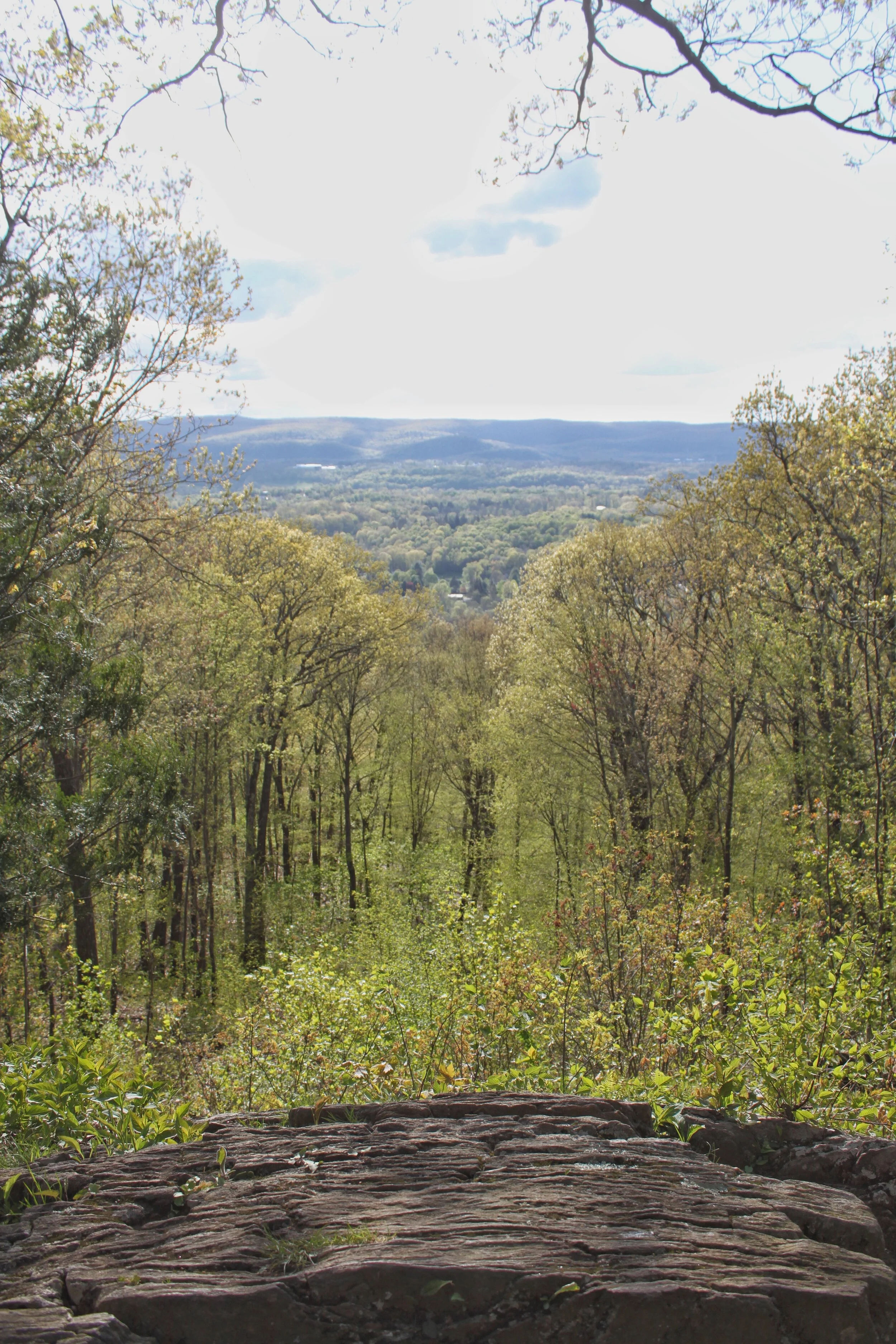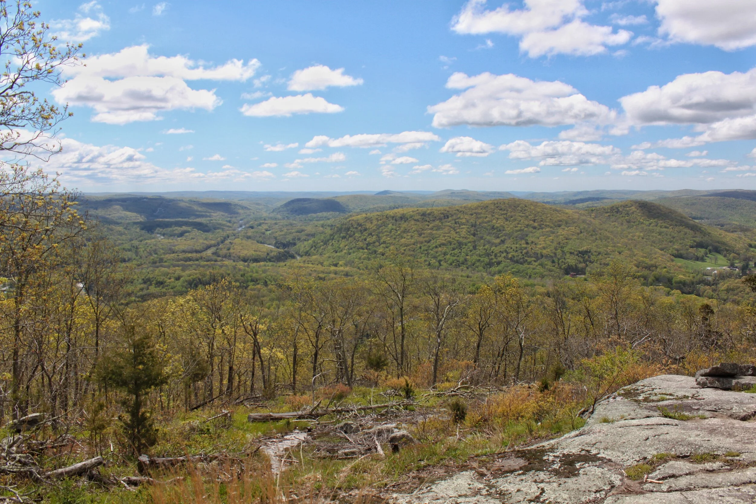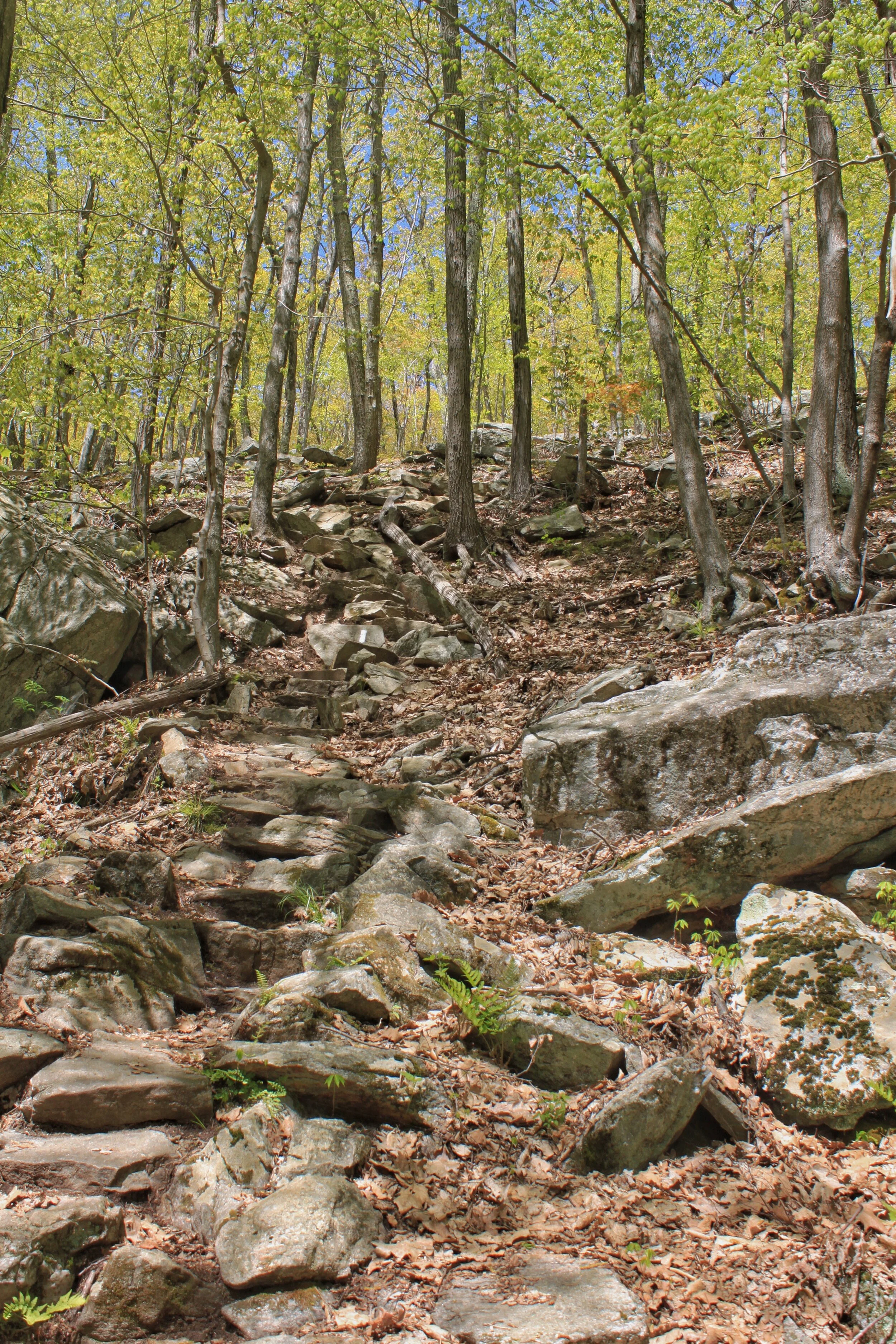 Once you dip back into the woods you start your climb up Schaghticoke Mountain. The climb is worth the view! The viewpoint at the top of your climb is called Indian Rock and was the perfect spot for a morning snack. About 3/4 up the climb you cross over into New York. You’ll stay in NY for about 1.7 miles and then you’re back in Connecticut.