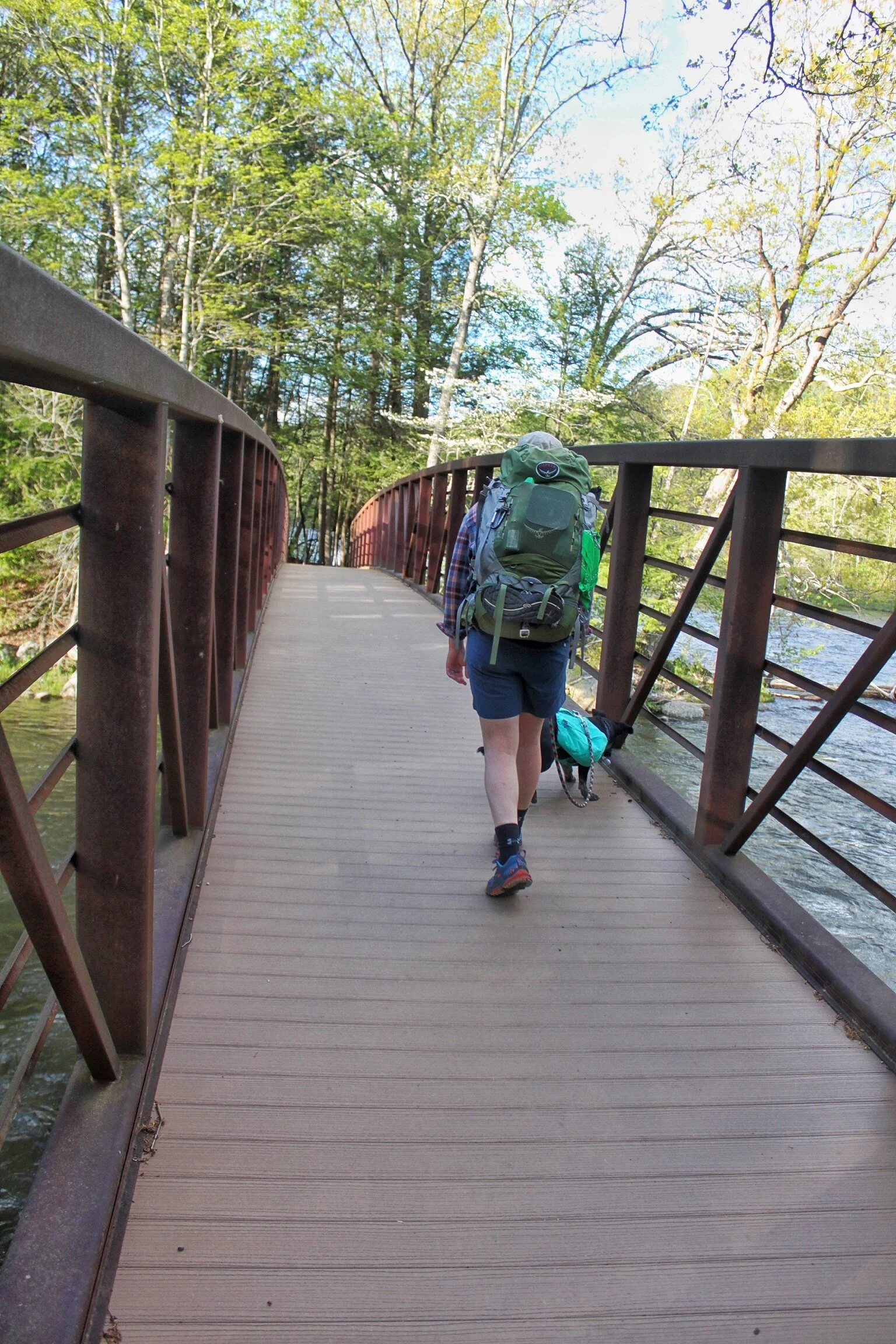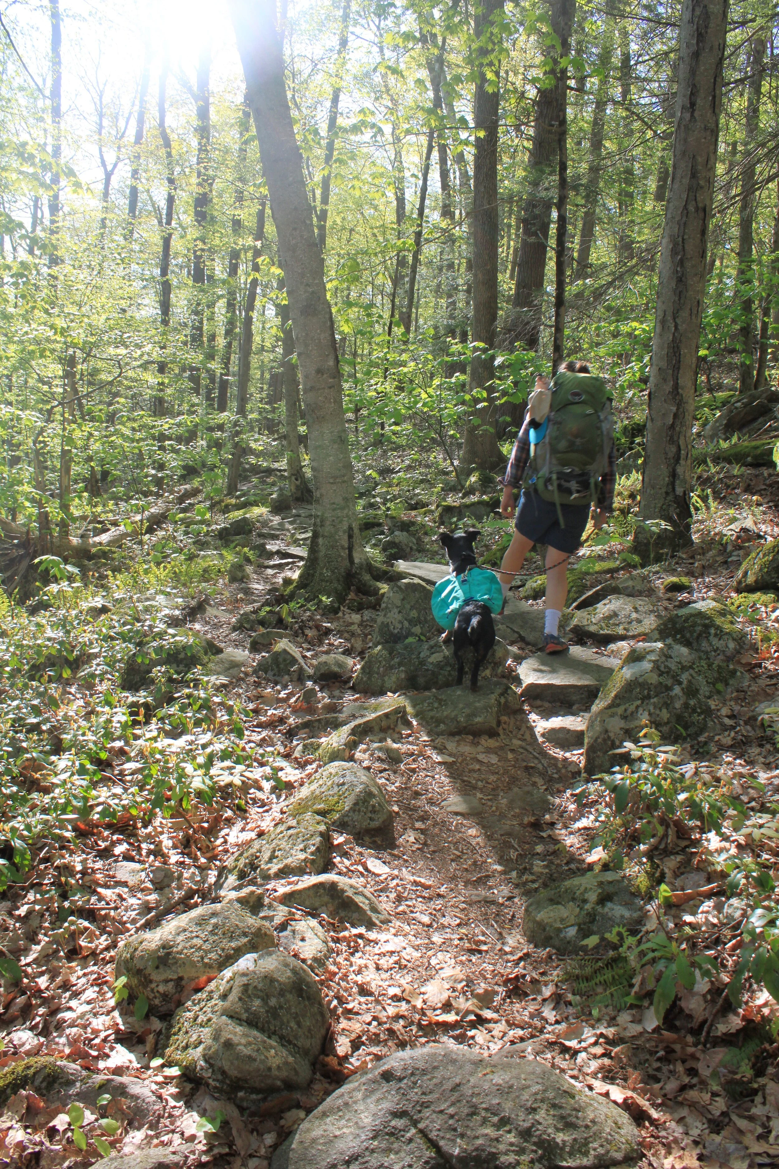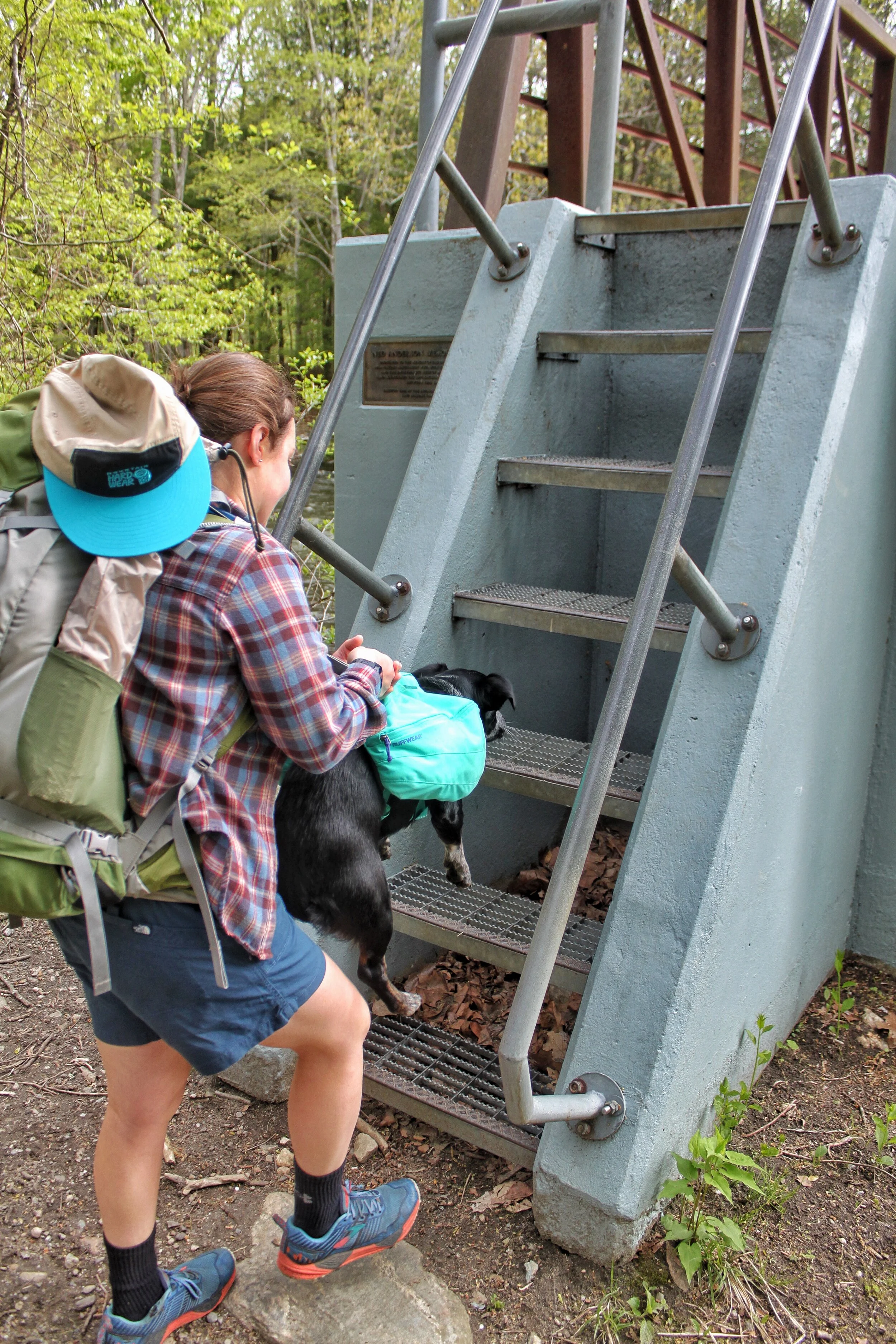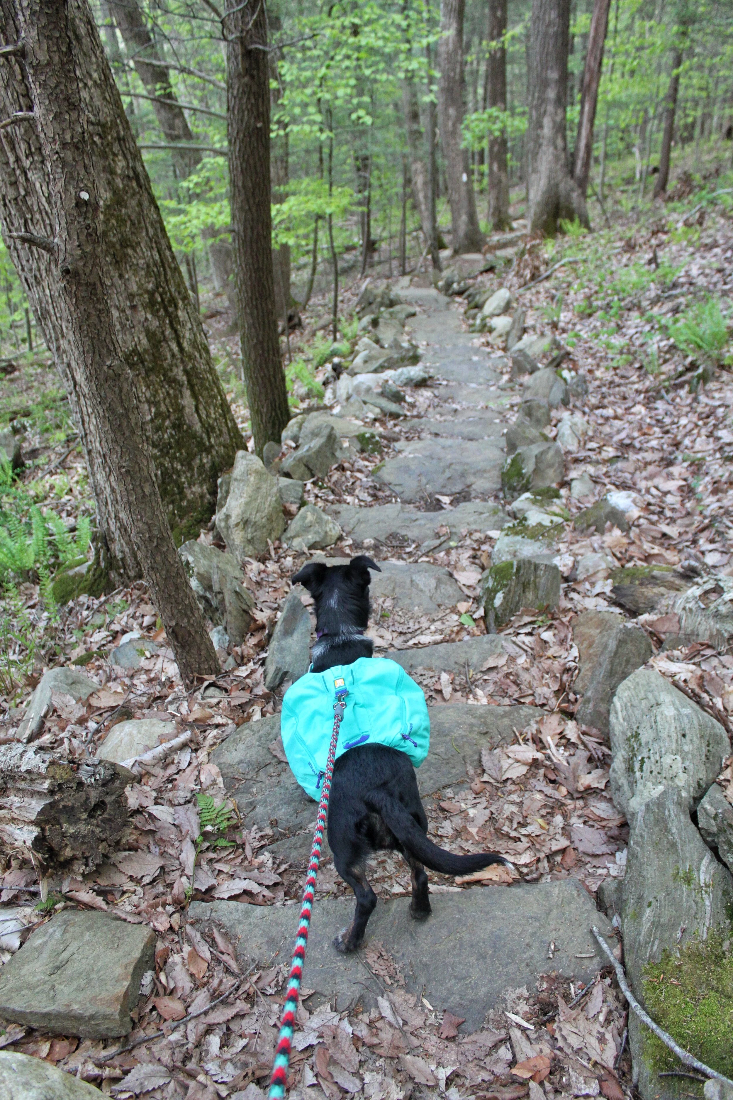 You leave the camping area and cross a bridge over the Housatonic River. If you have a dog the steps up to the bridge are quite steep and our pup wasn’t able to get up them. The first of many times we were grateful for her RuffWear pack and the built-in handle.