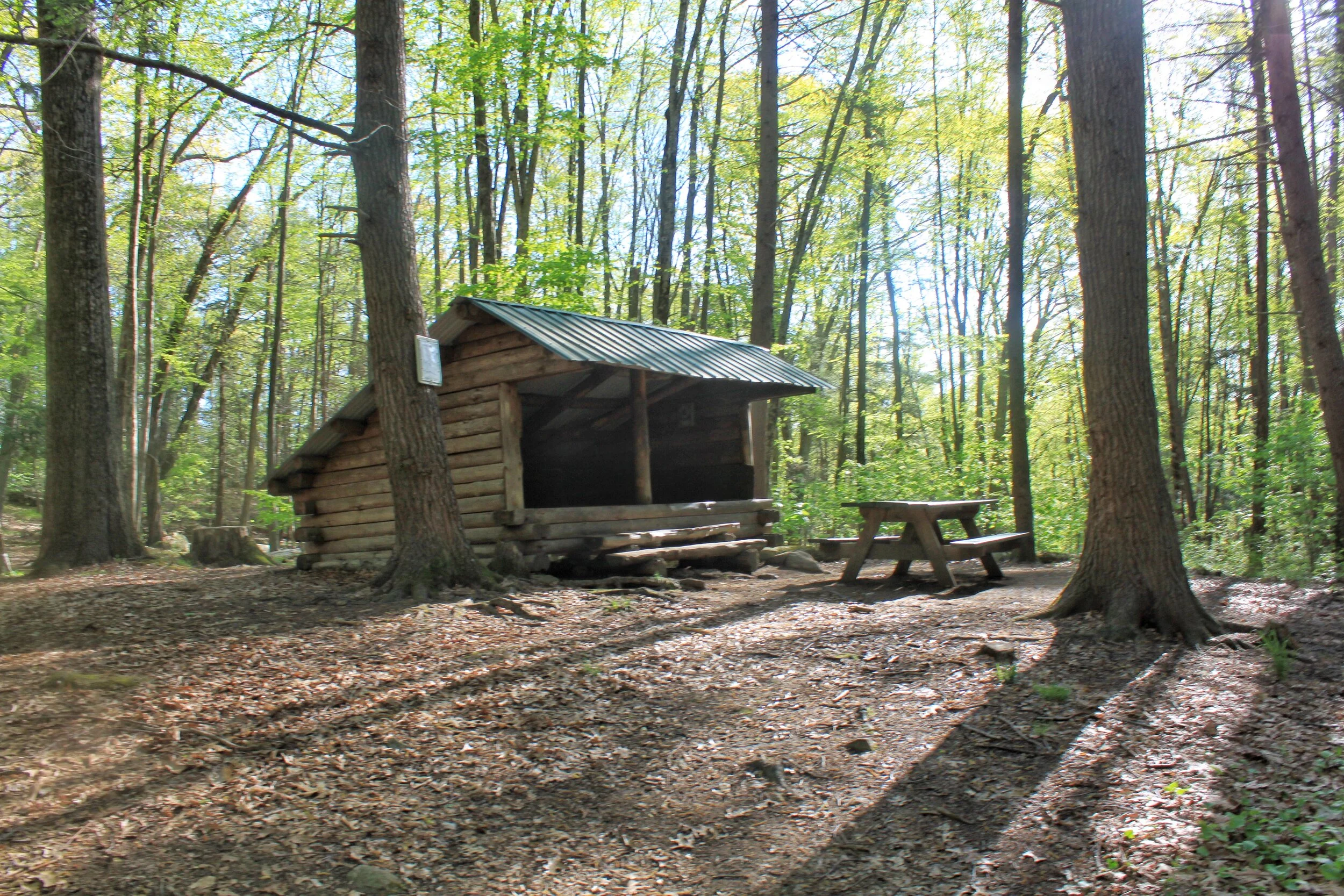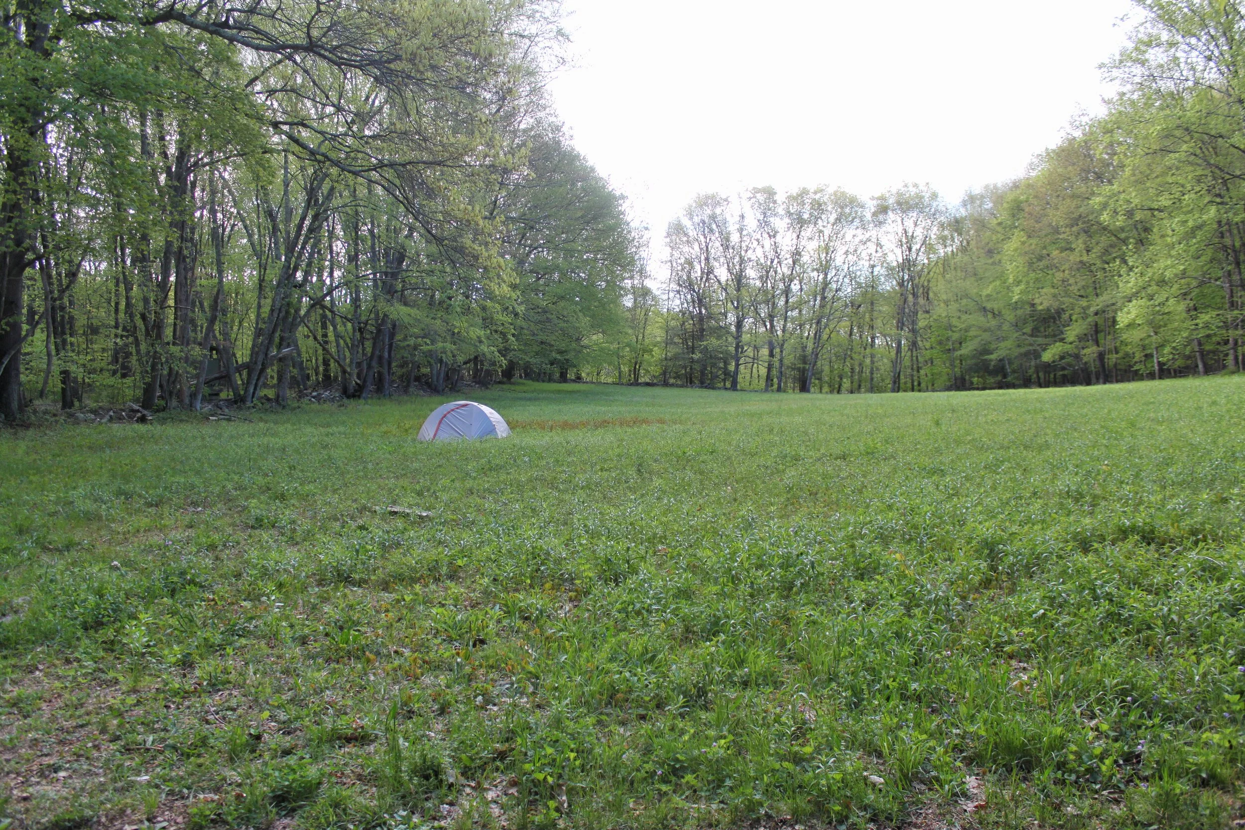 You can choose from a shelter, a large open field adjacent to the shelter, or several campsites. When we arrived the campsites were full so we set up our tent in the field. The Shelter has a water pump, bear-box, and privy. Not to mention amazing views of the Housatonic River.
