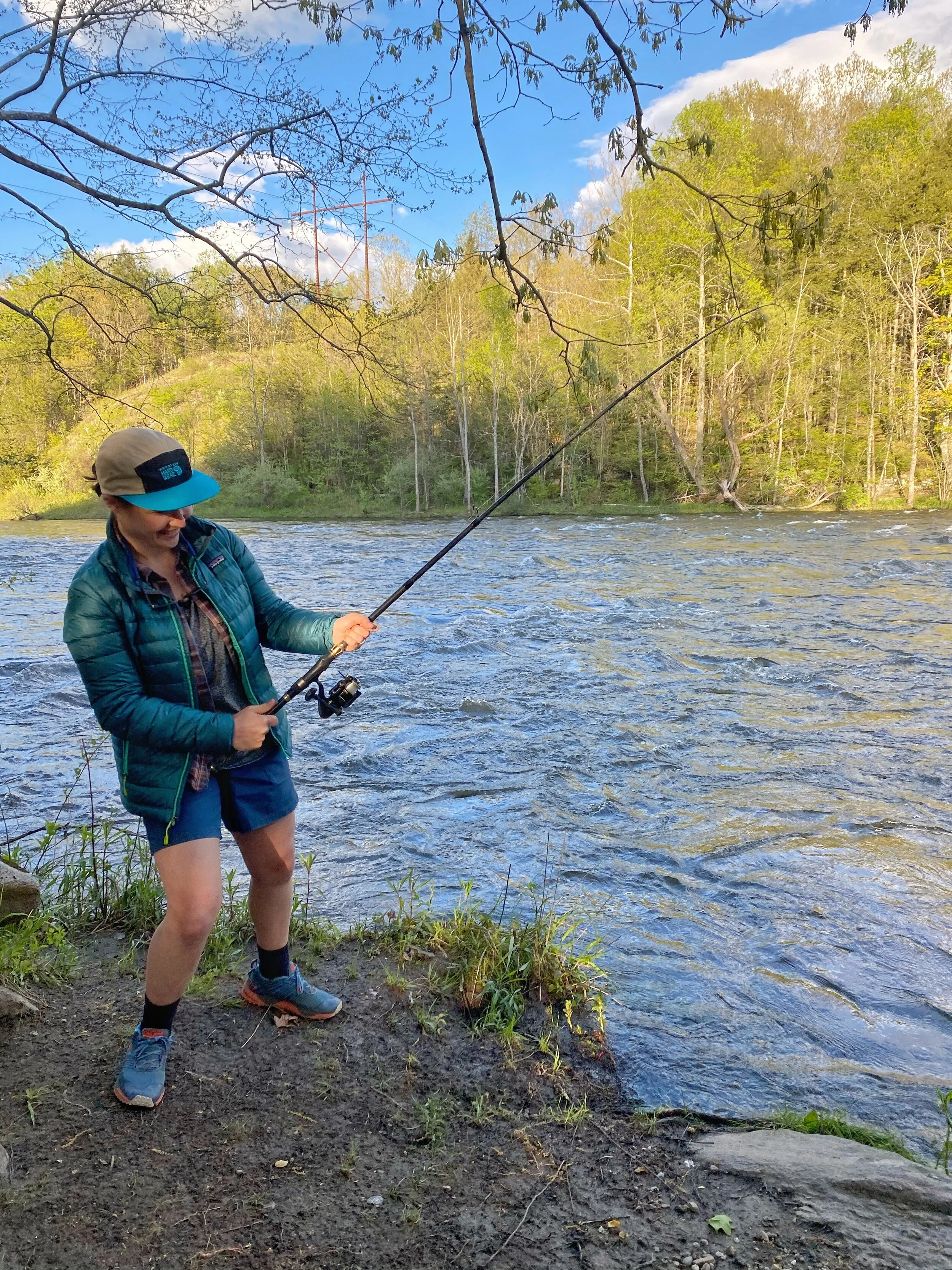 As we were cooking our dinner that night we had free entertainment when a group of Whitewater Kayakers passed through. Leah had packed out her fishing pole so as we cooked dinner Leah dropped a line in.